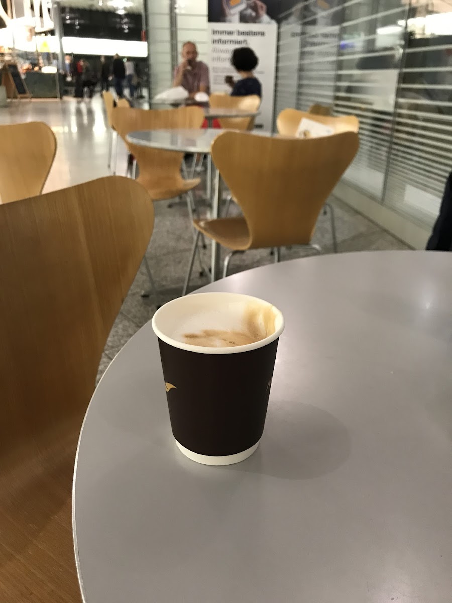 Even if there is mostly a long line to buy smt, the coffee is delicious and the staff keep working to serve under time pressure. It would be nice to have more options on this part of the airport instead of waiting in the line so long.