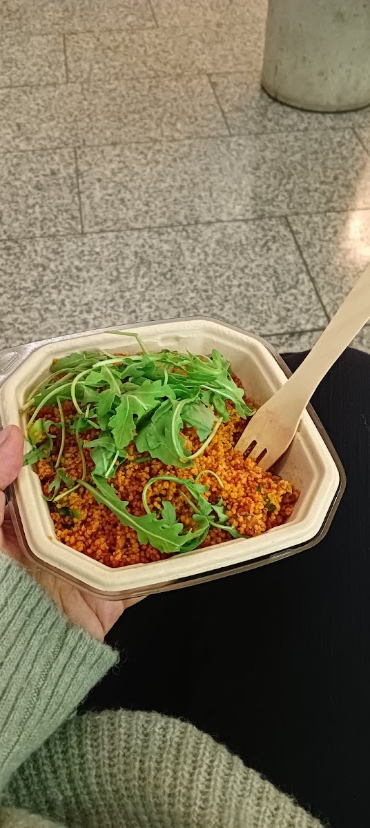 had a Couscous salad, that tasted good and was very well filled (6.5€ was a fair price, considering how filling it was). The overnight Musli with Berry Puree was also very nice with a reasonable price considering the location (3.9€). The service was friendly and helpful
